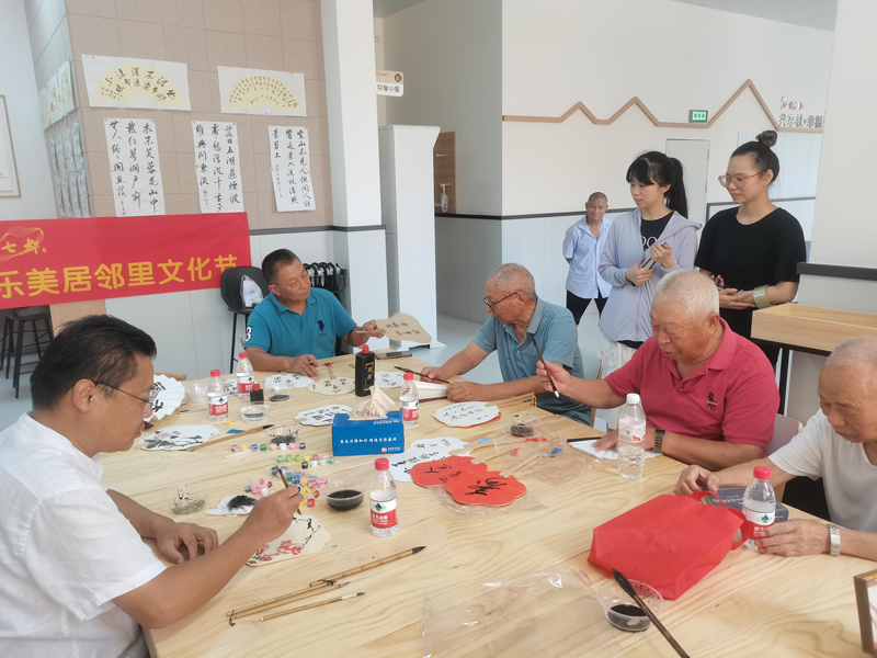“空山不見人,但聞人語聲”“人閑桂花落,夜靜春山空”……在和樂美居小區“共享社·幸福里”陣地里有一塊名為“銀齡沙龍”的共享區域,一米多長的書畫臺上擺放著筆墨紙硯,居民可以在這里盡情書畫。