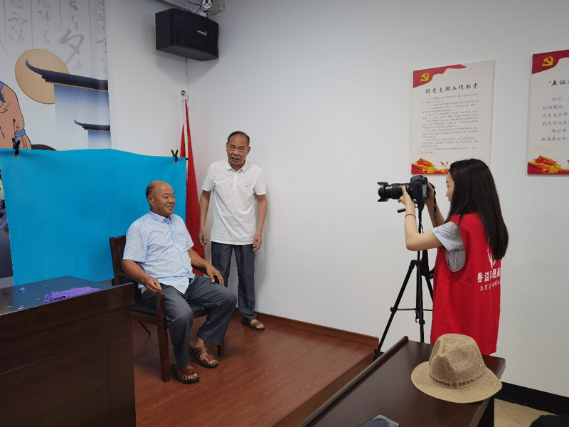 “香溢”志愿者為平陽鰲江鎮西橋村老人免費拍攝、沖洗證件照片。鄧上攝