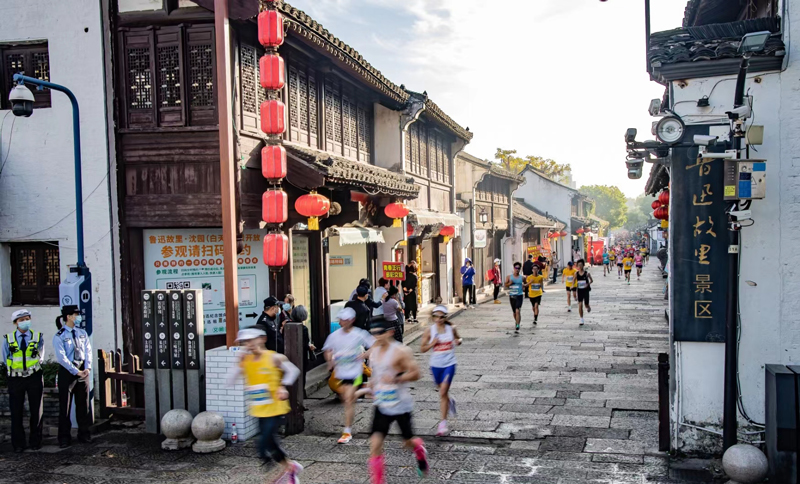 跑者途經魯迅故里景區。紹興市委宣傳部供圖