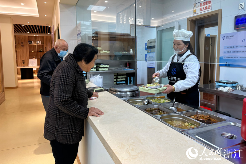 11月24日下午4點剛過,位于溫州市蒼南縣靈溪鎮余橋社區的長者食堂內,便陸續迎來了用餐的老人。老人們拿著貼有自己姓名標簽的餐盒來到窗口,清蒸肉餅、紅燒土豆、家燒包頭魚、炒包菜……共有6道熱騰騰的菜品供老人們選擇。