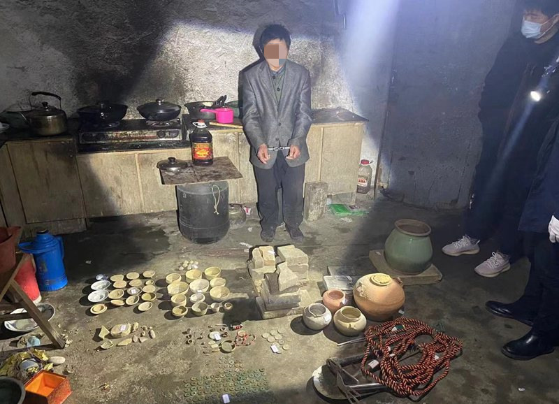 “在犯罪嫌疑人家中,我們看到了用古墓磚砌成的院墻和地面,也搜到其儲藏的大量文物。這讓我們更加確定,這個犯罪團伙絕對沒有這么簡單?!必撠煄ш犠ゲ兜耐踅ㄤh說。