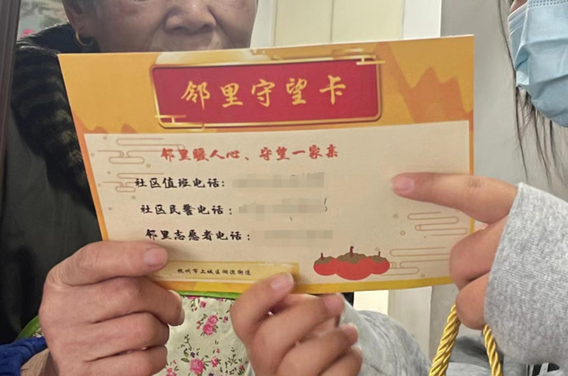 為老人發放“鄰里守望卡”。湖濱街道供圖