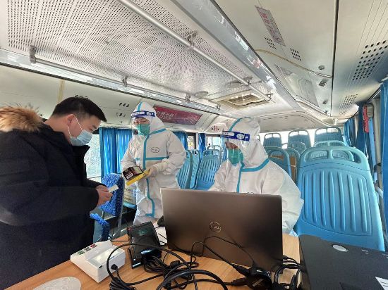 “早晨7點,志愿者和社區工作人員就布置好了現場?!弊筻徲依锷鐓^網格長王麗說,居民們得知有發熱流動診療車進駐后,早早就來排隊了。