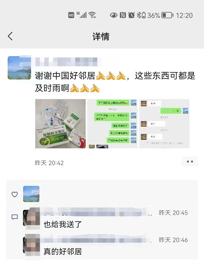 居民在朋友圈表達感謝。路北街道供圖