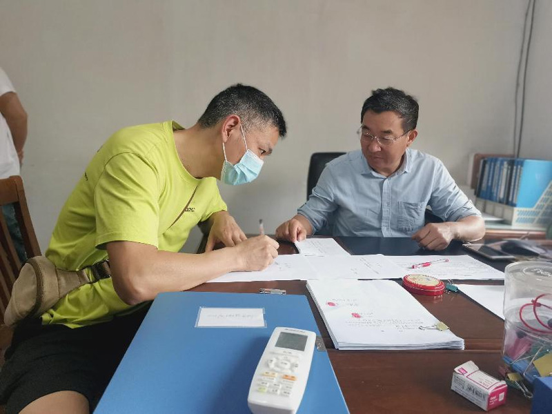 紹興嵊州市煙草專賣局工作人員(右)指導個體承租戶簽署并確認退租協議。鄭貞珍攝