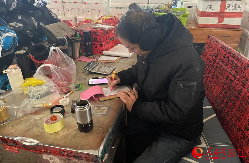 批發商孫中波正忙著跟經銷商結賬。人民網記者 王麗瑋攝