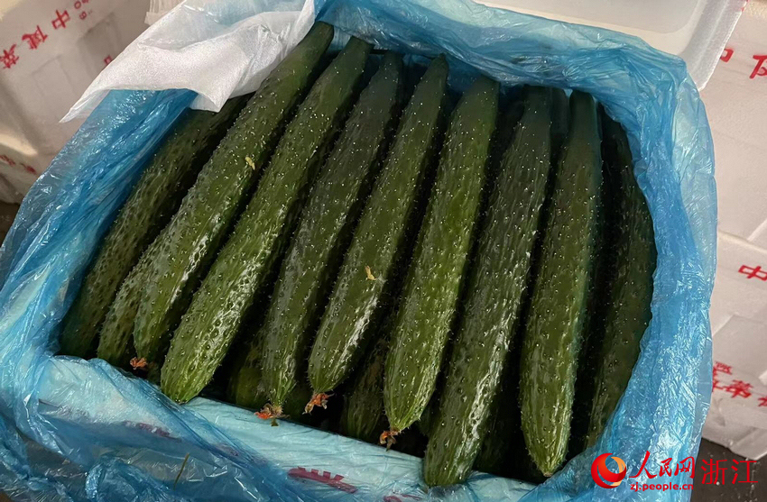 批發商程中行購進的黃瓜。借助標準化種植,農產品品質越來越好。人民網記者 王麗瑋攝