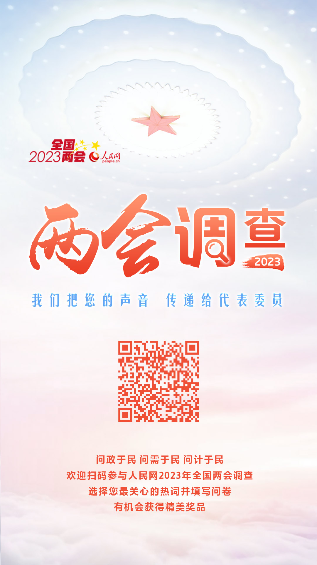 人民網北京2月1日電 (任一林、宋晨)人民網2023年全國兩會調查于今日正式上線,這是人民網連續22年開展全國兩會調查。網友可通過人民網2023年全國兩會調查專題、“人民網+”客戶端、人民網法人微博、人民網官方微信、“學習大國”微信公眾號等全媒體通道進入調查頁面,選擇您最關心的熱詞并填寫調查問卷。