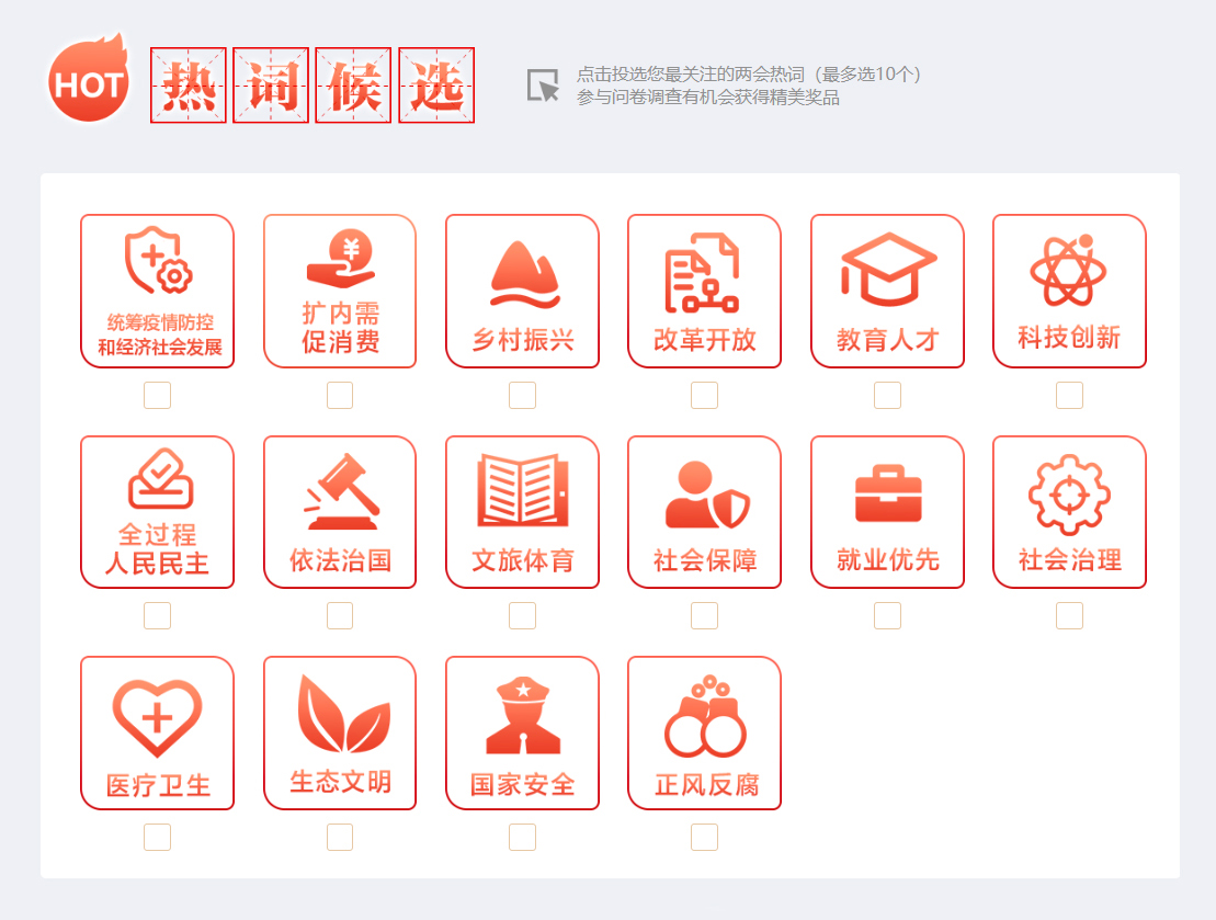 人民網推出2023年全國兩會調查 十大熱詞等您選出