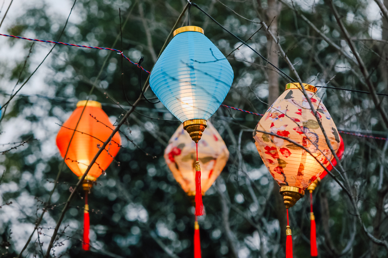 現場,兔子燈、魚燈、走馬燈等款式各異的花燈被掛上了枝頭,在月色下顯得格外俏麗,引來了不少村民打卡拍照。在梅溪鎮曉墅社區文化禮堂的戲臺上,京劇、越劇、黃梅戲等戲曲劇種輪番進行現場演藝。戲臺下,湯包、撈面、魚丸等特色美食吸引著美食愛好者駐足品嘗。另一邊的連廊內,小朋友們扯下燈謎小卡片,興沖沖地到服務點兌換花燈禮品。