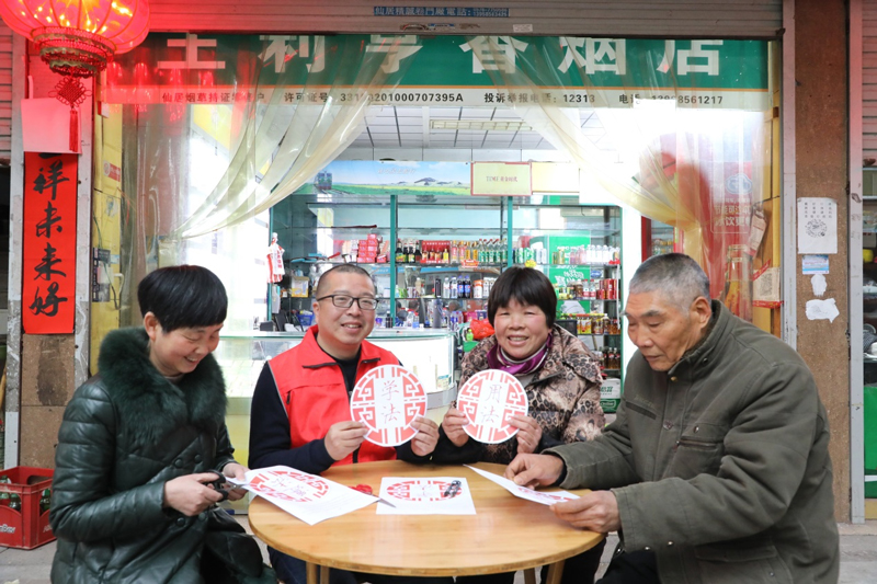 在臺州市仙居縣福應街道月塘社區,“律動”普法志愿服務隊員和周邊居民一起用剪紙說“法”,將法治元素融入到剪紙技藝中,讓群眾在體驗文化樂趣的同時,使得法治文化深入人心。