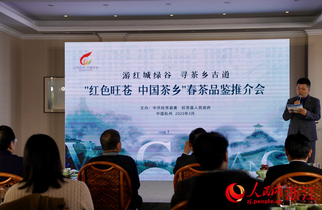 “游紅城綠谷 尋茶鄉古道”——“紅色旺蒼·中國茶鄉”春茶品鑒推介會現場。人民網記者 郭揚攝