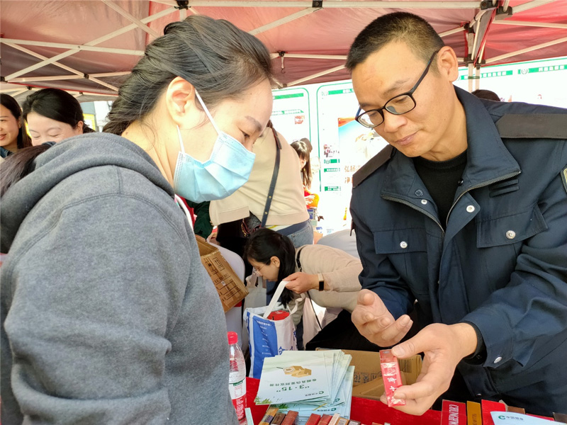 “香溢”志愿者為群眾講解真假煙鑒定知識。李玲燕攝
