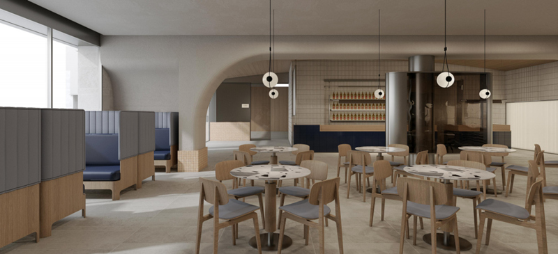 來到大廈地下一層,這里已完成全面改造,打造了2000平方米的高端智慧餐廳,集員工餐廳、高管自助餐廳、行政包廂、景觀下沉式廣場于一體,可供700人同時就餐。餐廳內還運用先進的AI圖像識別技術,實現了點餐、結算自動化、智能化。