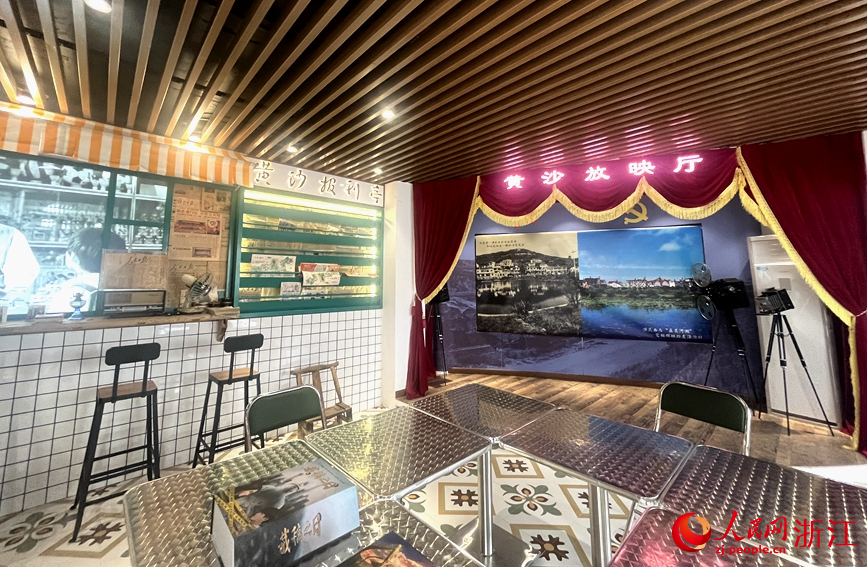 激活展館,是五龍鄉邁出的第一步。五龍鄉有一處叫初心照相館的場館,這是當地宣傳紅色教育的基地之一。走進初心照相館,老舊報刊亭、黃沙放映廳將人拉進了二十世紀七八十年代的懷舊氛圍中。更引人注目的是,在房間的正中間,一張方形桌上放著劇本殺盒本。