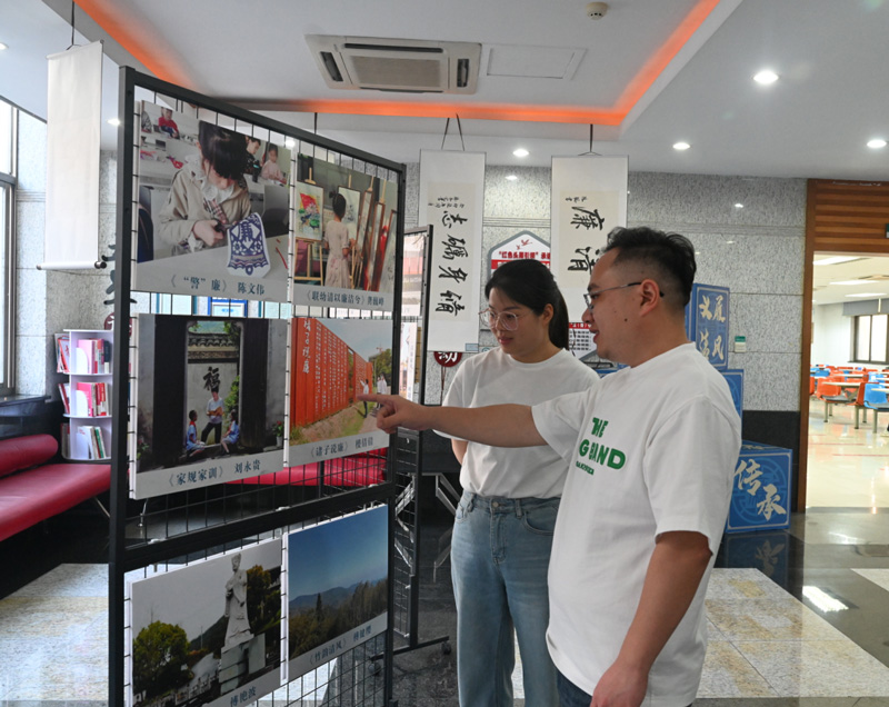 員工在參觀“清廉寄語 家風傳承”書畫攝影展。義烏市煙草專賣局供圖