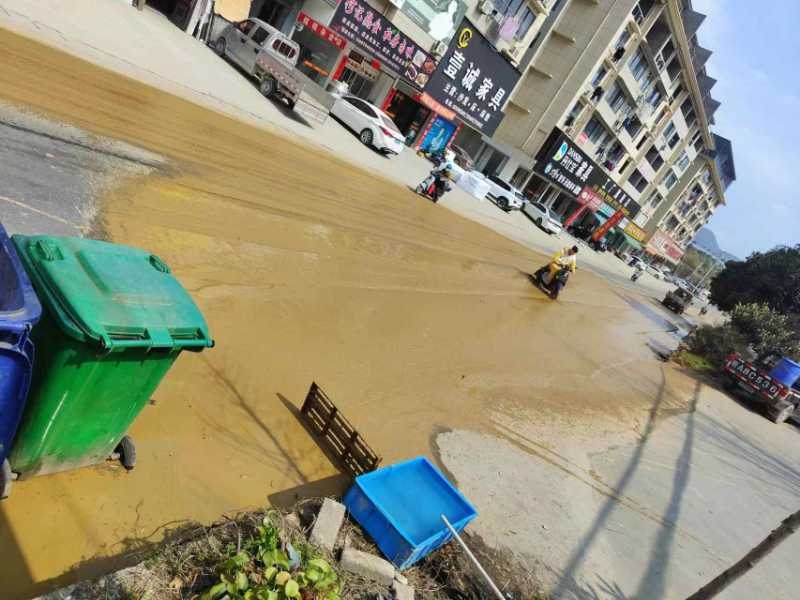 因管道狹小導致淤泥上溢,道路上泥水涌出,影響出行。龍泉市社會治理中心供圖