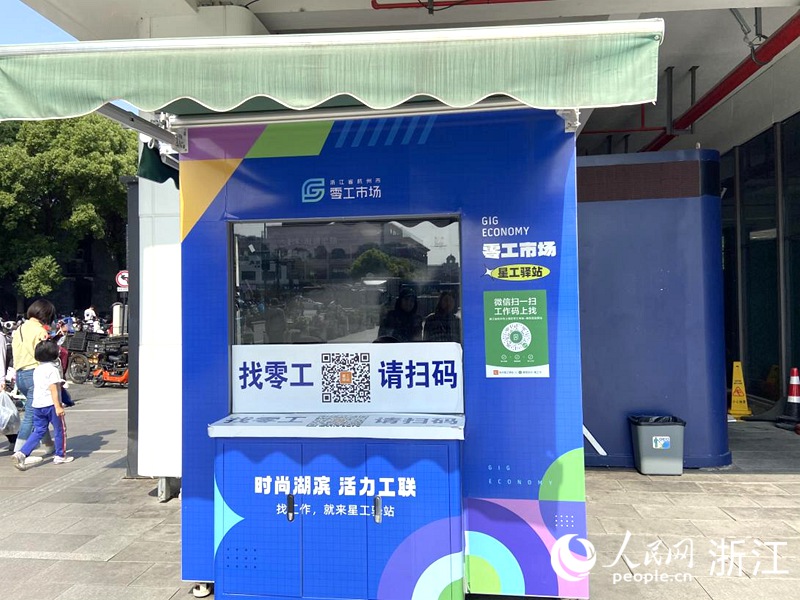 位于杭州市上城區湖濱街道龍翔橋站A口不遠處的“零工市場亭”。人民網 方彭依夢攝