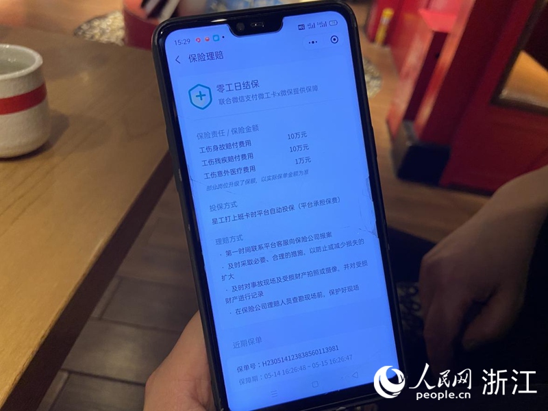 打卡上班平臺自動投保。人民網 方彭依夢攝