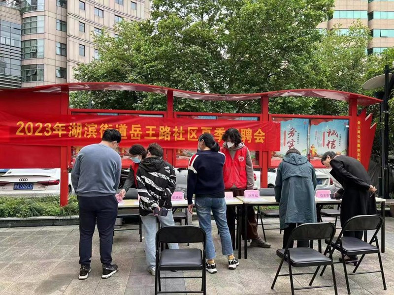 杭州市上城區湖濱街道在社區舉辦的線下小型招聘會。湖濱街道供圖