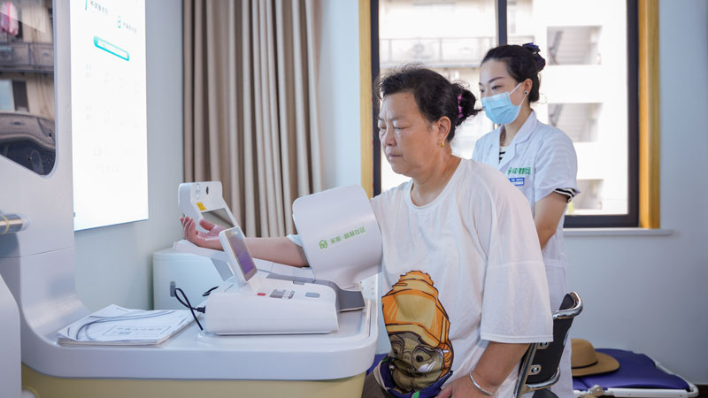 居民在“荷樂頤養院”測量基礎健康數據。青荷苑社區供圖