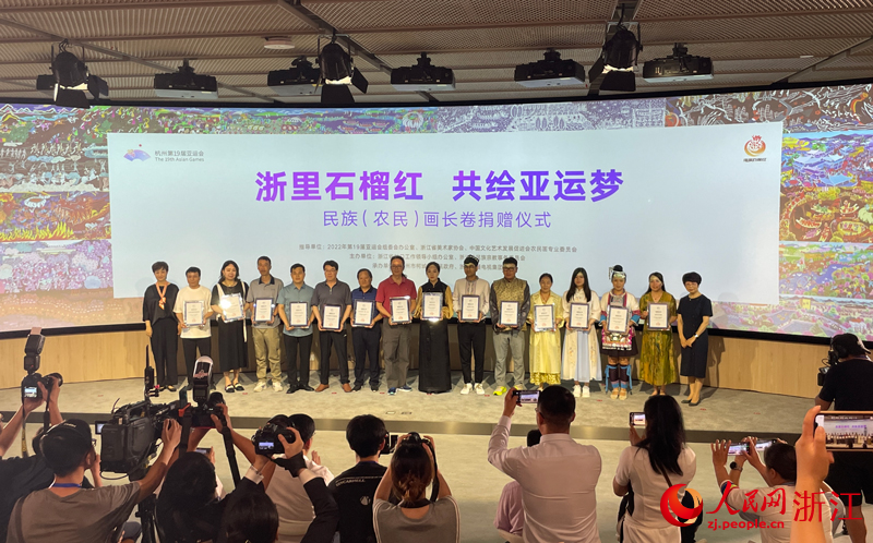 人民網杭州6月13日電 (秦銘澤)今天上午,“浙里石榴紅 共繪亞運夢”民族(農民)畫長卷捐贈儀式在杭州亞運會博物館舉行。這也是杭州亞運會博物館首次在媒體面前亮相。