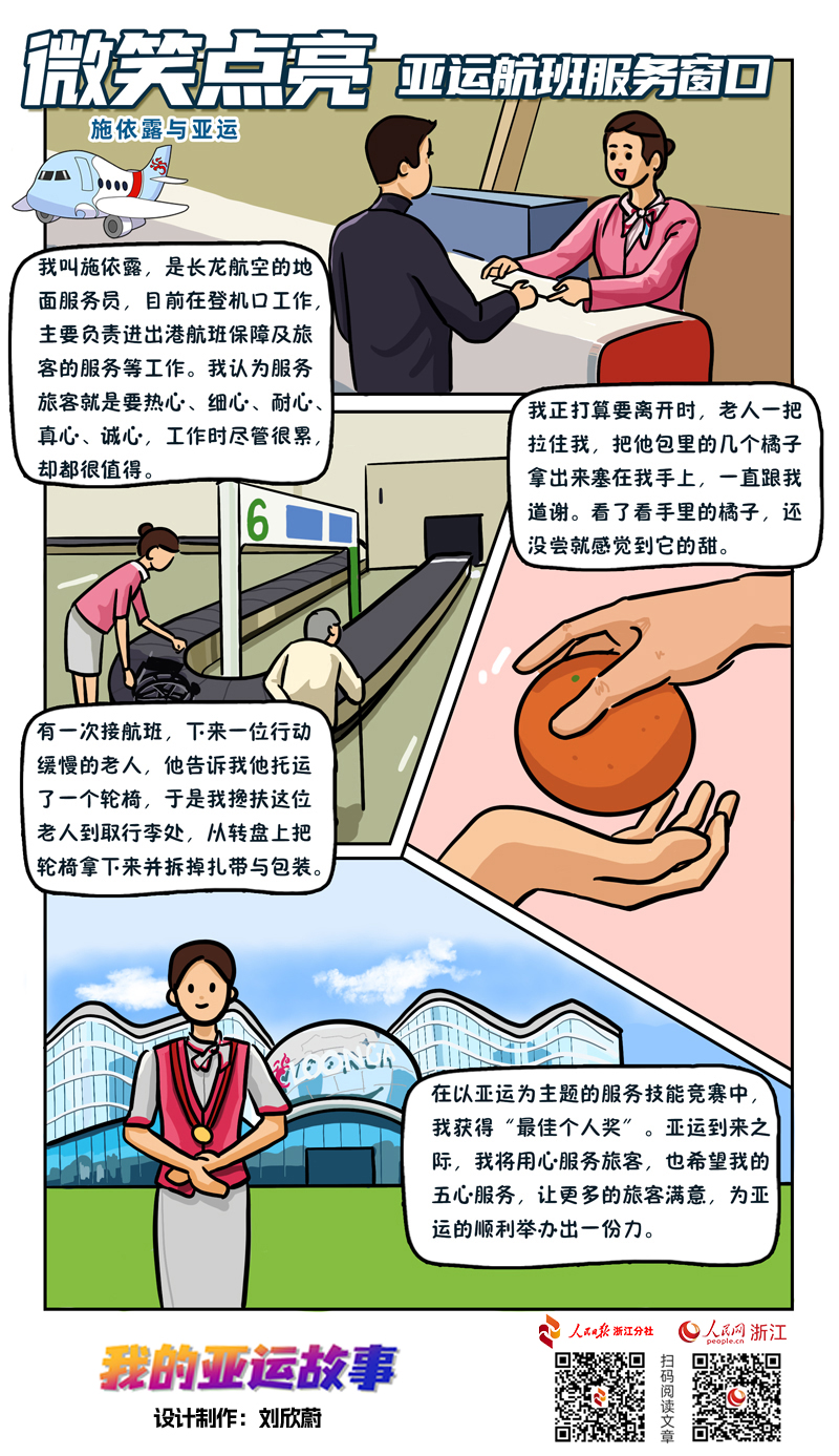 “其實,我們負責的抵離服務主要還是發生在登機口?!笔┮缆墩f罷便拿起話筒,用中英雙語播報起航班的最新登機信息。在不久前公司舉行的亞運服務技能競賽上,憑借雙語播報能力的“加分”,她最終獲得了“最佳個人獎”。