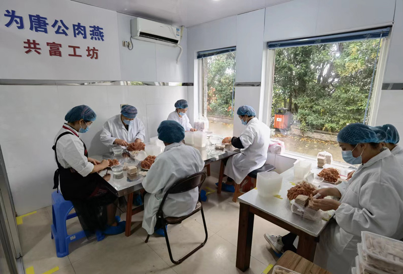 張小玲在肉燕共富工坊工作已有4年,“以前我就在家帶孩子,現在在‘家門口’就能就業,每月都能給家里增加幾千元的收入,還不耽誤照顧小孩,我感覺挺好的?!睋?,通過共富工坊的模式,為唐公肉燕店創造了30個就業崗位。