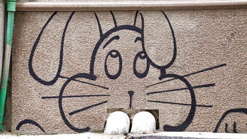 從地下冒出頭的兔子、叼著信封的貓頭鷹、沿著空調管線沖浪的南瓜娃娃、望著肉流口水的小狗……近日,家住杭州市上城區湖濱街道青年路社區的沈大伯發現,社區樓道的拐角多了很多有意思的小墻繪,這給完成改造不久的青年路社區增添了一抹活力。