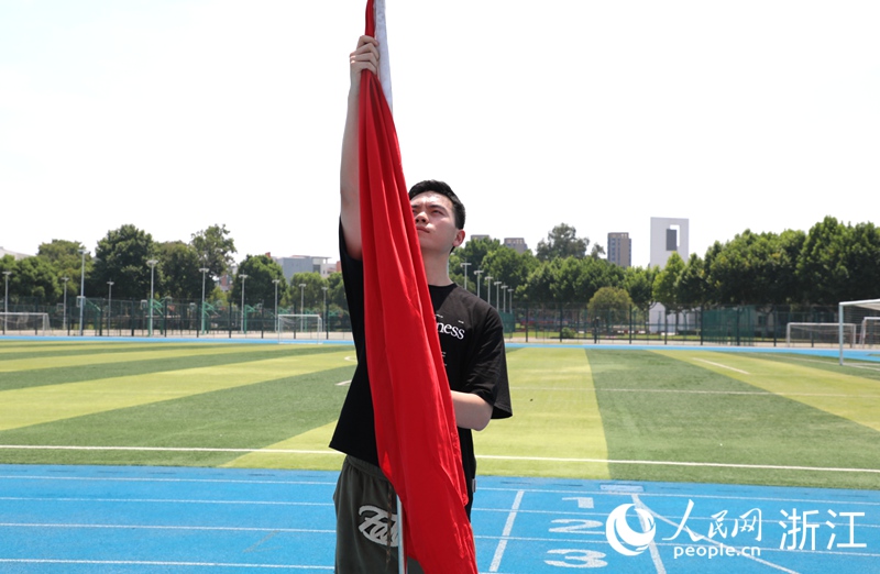 劉品源是金華職業技術學院信息工程學院的一名學生。2023年2月,正值杭州亞運會志愿者招募,他主動報名,并成功入選成為亞運會金華賽區升旗手。杭州第19屆亞運會期間,他將負責金華賽區所有比賽頒獎典禮的升旗任務。