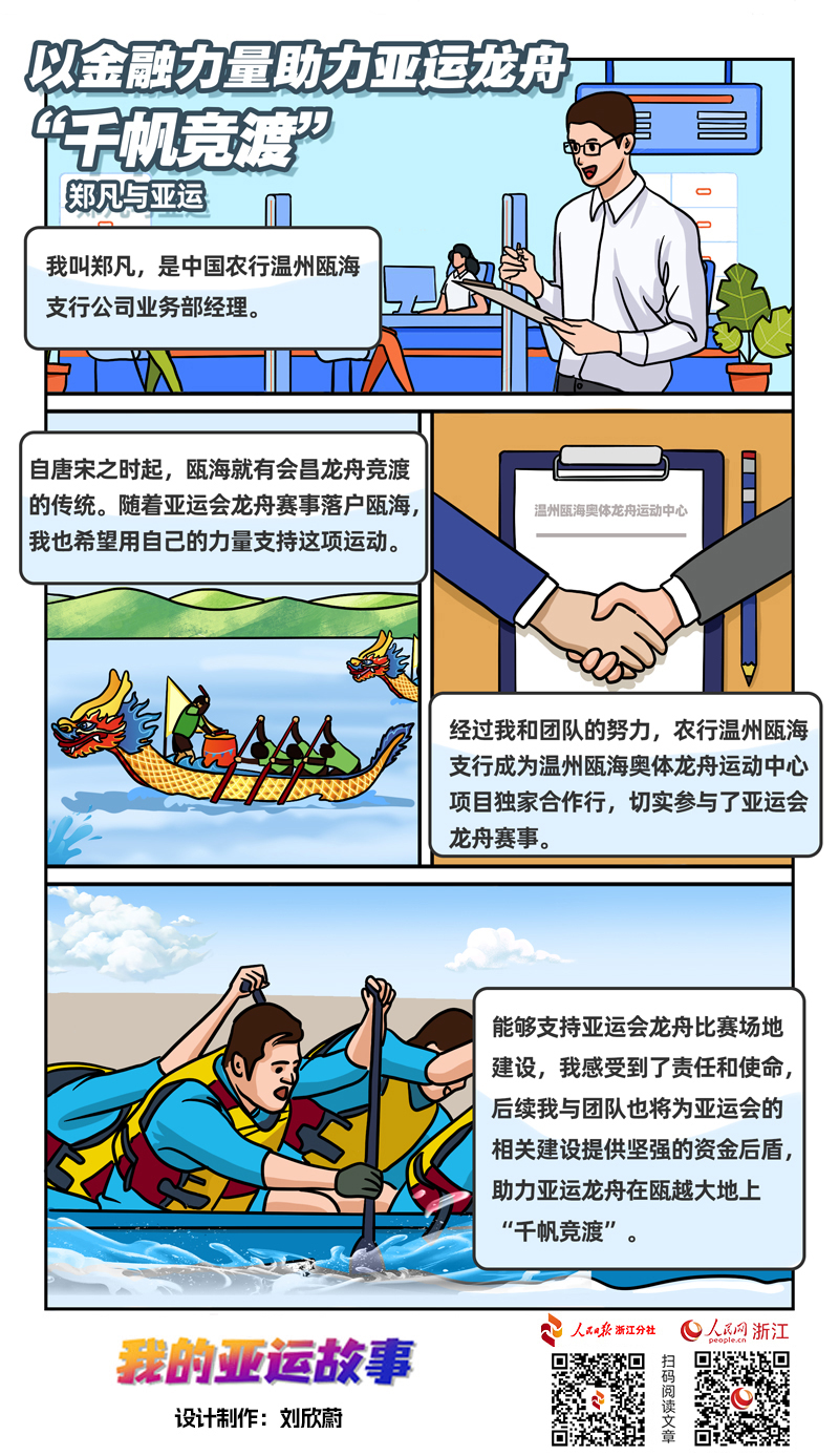 “能夠以自己的專業技能和實際行動支持亞運會龍舟比賽場地建設,我充滿期待,也感受到了一份沉甸甸的責任和使命?!编嵎脖硎?,農行溫州甌海支行將為亞運會的相關建設提供堅強的資金后盾,助力亞運龍舟在甌越大地上“千帆競渡”,讓亞運會成為向世界展示浙江省良好形象的“重要窗口”。