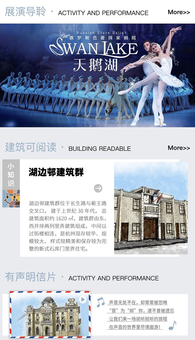 在“蕓游湖濱”小程序中,市民游客可進行“展演導聆”“建筑可閱讀”“有聲明信片”等互動體驗。網絡截圖