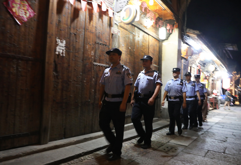 8月2日晚上9點,麗水市松陽縣城西屏街道明清古街游人如織。西屏派出所民警正在步巡,并不時對沿街店鋪業主開展安全知識宣傳。