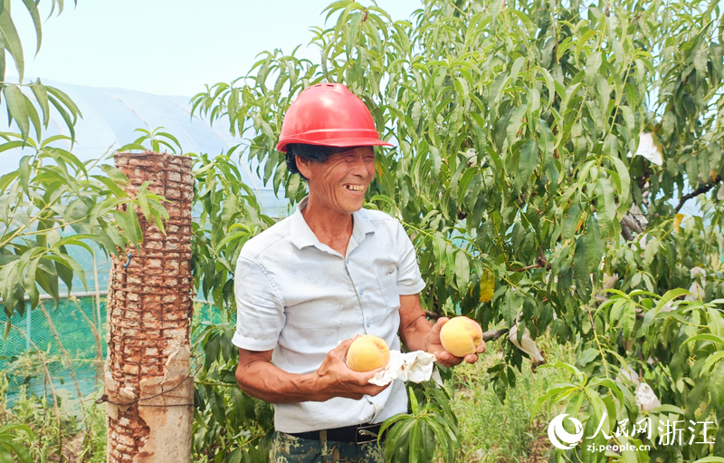 岱山縣岱西鎮火箭村一處果園內,果香四溢,農戶正在采摘應季水果。