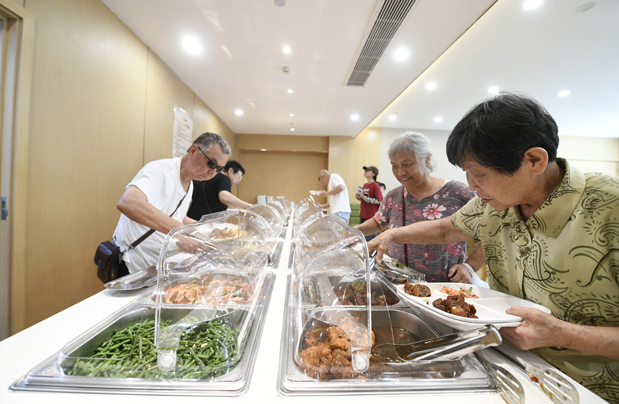結束了上午在老年大學的課程,吳阿姨來到街道的幸福鄰里食堂點了一葷一素,“天氣熱,懶得回家燒飯。來這里能吃現成的,不用買菜洗碗了,還吃得放心!”