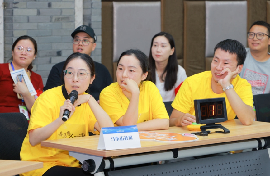 社工網格能力大比武現場,馬市街社區社工代表搶答問題。小營街道公服辦供圖