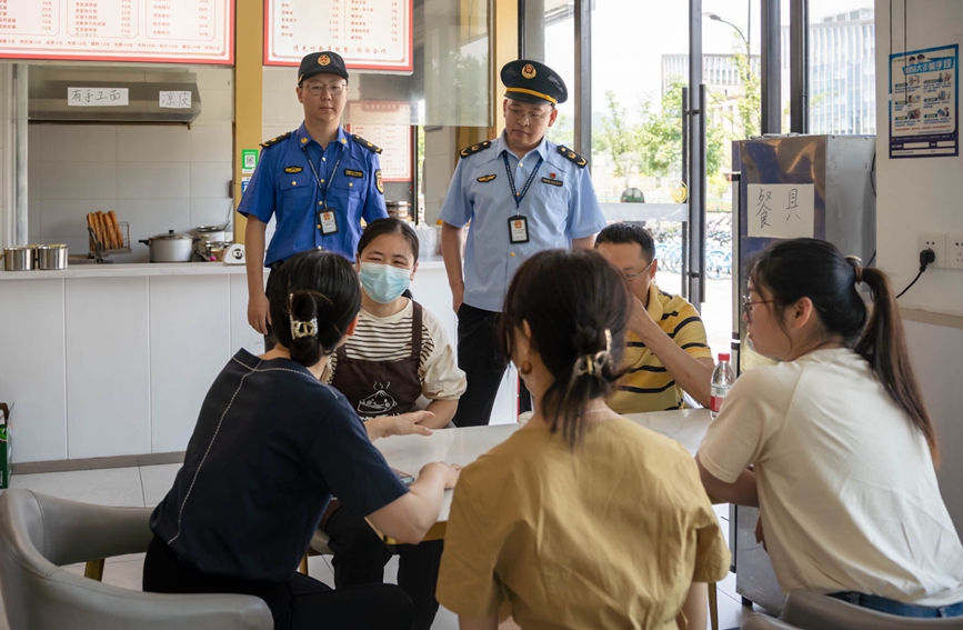顧江英走訪包子鋪,與店鋪老板交流調查執法檢查頻次、執法滿意度。南星街道黨建辦供圖