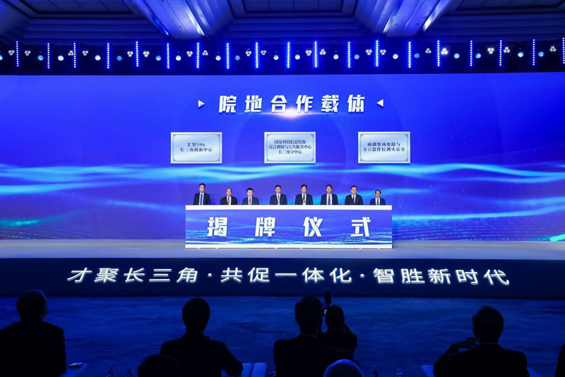 開幕式上,國家科技信息資源綜合利用與公共服務中心長三角分中心等3個院地合作載體進行了現場揭牌。嘉興市委組織部(市委人才辦)供圖