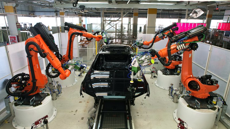 “通過機器視覺獲取測量信息,可對拼接后的整車關鍵尺寸進行自動檢測,三四米長的車身,尺寸偏差不超過兩毫米,視覺檢測設備精度要求高于0.2毫米?!惫f,依靠生產線上這些裝載了“慧眼”的工業機器人,實現從定性評估到定量分析,確保每一輛汽車在下線時都能質量過關。