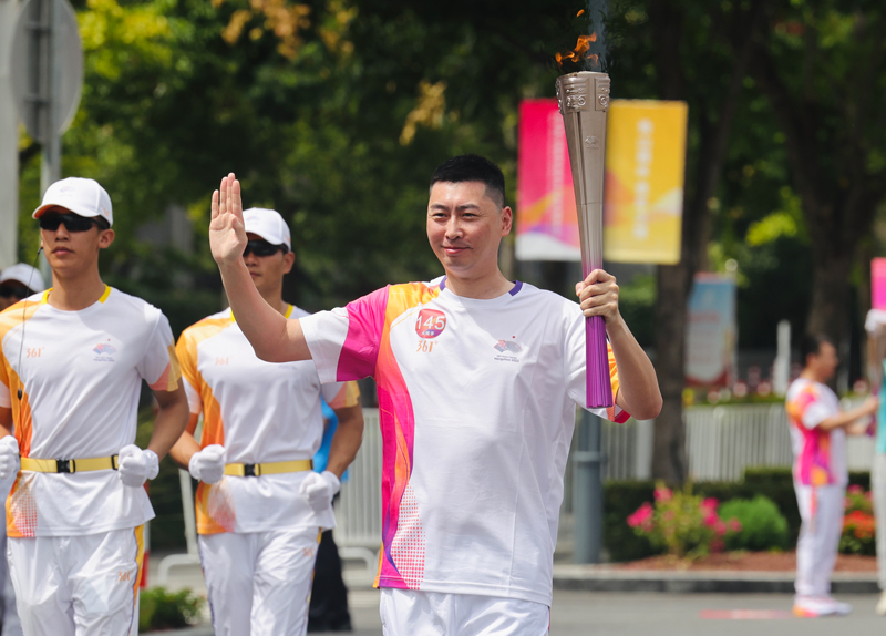 9月16日,杭州第19屆亞運會火炬傳遞麗水站舉行。浙江長龍航空飛行員王河成為當天第145棒火炬手。