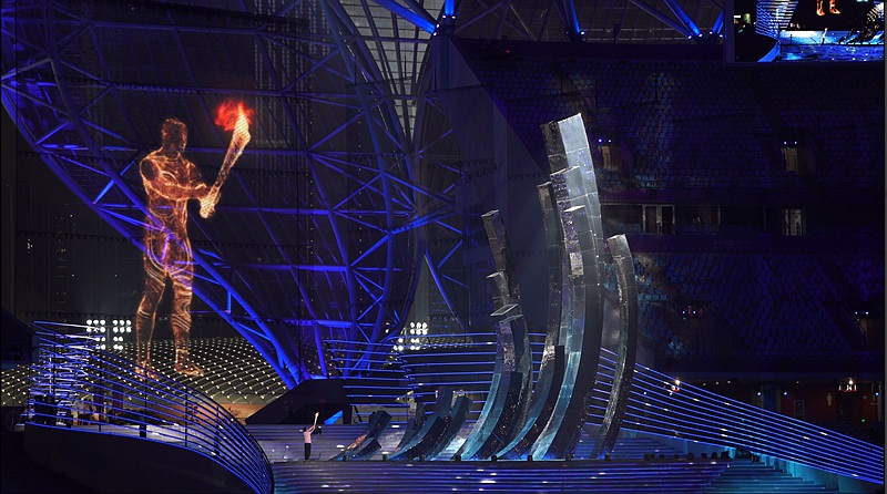 主火炬塔配備了動態裝飾系統,由鏡面不銹鋼波紋板制成。受訪者供圖