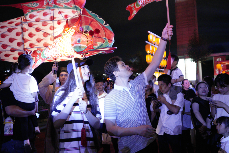 9月28日晚,國際友人akmal(阿珂姆)和Kamilya(卡咪拉)來到溫州蒼南縣中心湖廣場打卡“月滿山?!s耀蒼南”主題集市,與市民游客一起逛集市、看巡游、慶雙節,在豐富的活動中切身感受蒼南人民歡度中秋的濃厚氛圍。