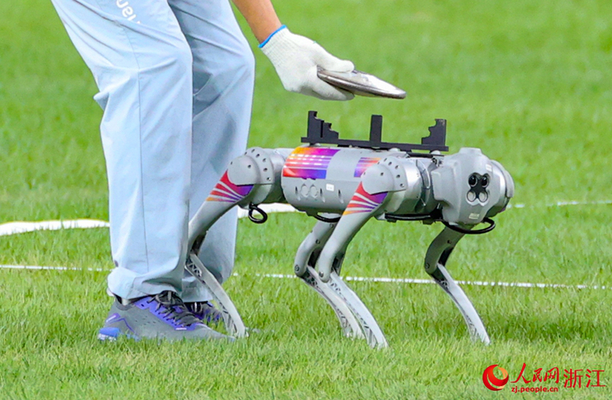 四足機器狗在賽場上運送鐵餅。人民網章勇濤攝