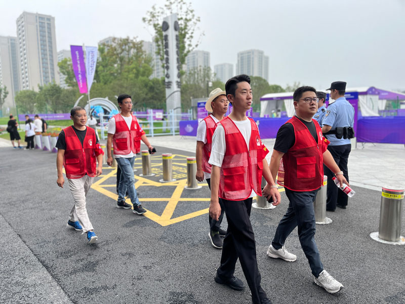 他們當中,有來自千島湖浪川鄉的駐杭流動黨委書記,有來自聯建單位肛泰醫院的院長,有律師、老師……他們在巡邏中扮演著不同的角色,有時是移動路牌,為過往行人指路;有時是“紅色人墻”,為觀眾、游客們保駕護航;有時是應急員,及時處置突發事件;有時是城市“美容師”,整理單車、清掃街道、修補綠化、排查隱患……在他們的影響下,更多的志愿者和小標兵也紛紛加入巡邏隊伍。不少電競比賽結束時間在晚上10點、11點,很多觀賽完畢的觀眾直呼,看見場館外、馬路邊、天橋上一個個“紅馬甲”就讓他們感到安心。