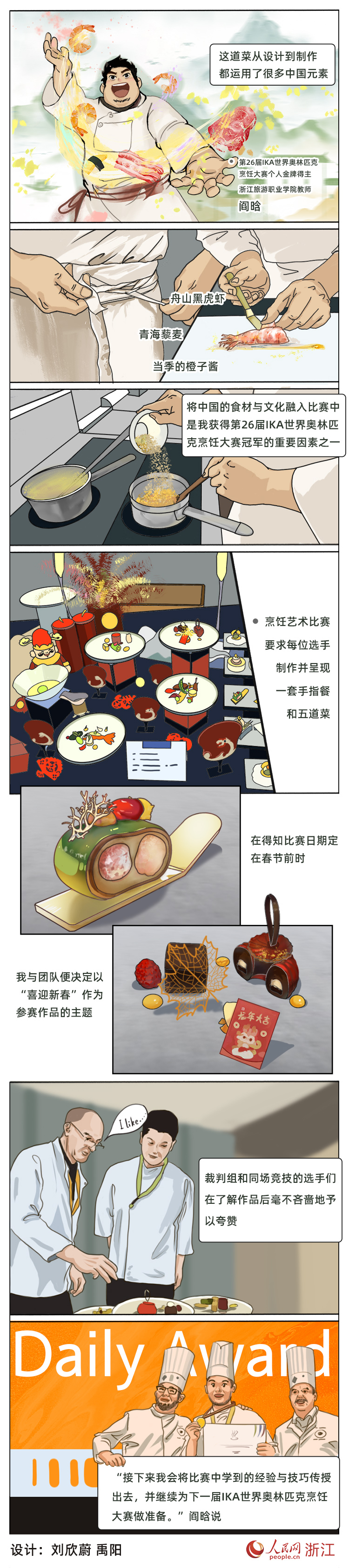 在2024年2月舉辦的第26屆IKA世界奧林匹克烹飪大賽Culinary Art(烹飪藝術)個人賽項中,浙江寧波小伙閻晗奪得金牌。人民網浙江頻道來到浙江旅游職業學院,探訪閻晗與他的老師,聽他們聊聊奪冠背后的故事。