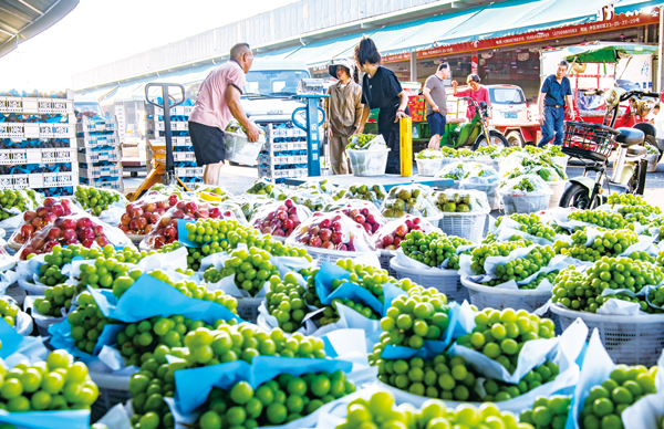 7月7日,金華市水果批發市場,金華本地產的葡萄、蜜梨、李子、水蜜桃、西瓜、梨瓜等夏季水果大批量集中上市,到市場進貨的商家和合伙批發的市民絡繹不絕,裝貨、搬運、交易,一片繁忙景象。據了解,7月下旬,夏季水果上市量將達到高峰。(時寬兵)